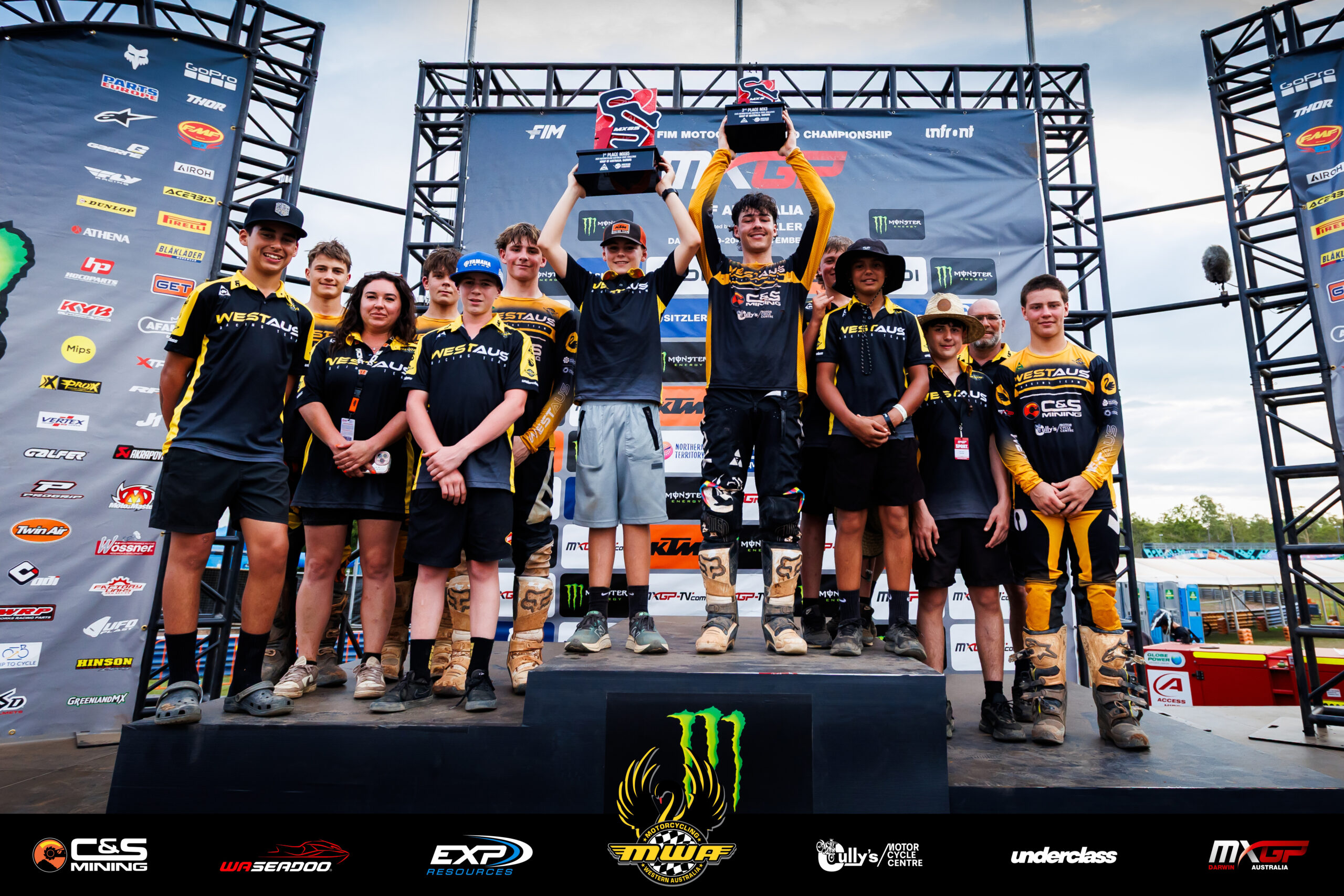 After 3 days of competition, the event was bought to a premature end by an early wet season storm. As the 2nd MX2 GP race got under way the heavens opened up with heavy rain. Whilst the rain brought welcome relief from the hot and humid Darwin weather and lots of fun throughout the crowd, it ultimately lead to the abandoning of the last MXGP race. After 3 days of racing there wasn’t much left to do but enjoy a beer, reflect on an incredible performance and experience for our young talented WA Motocross riders and look forward to next year’s event from 18-20 September 2026.
